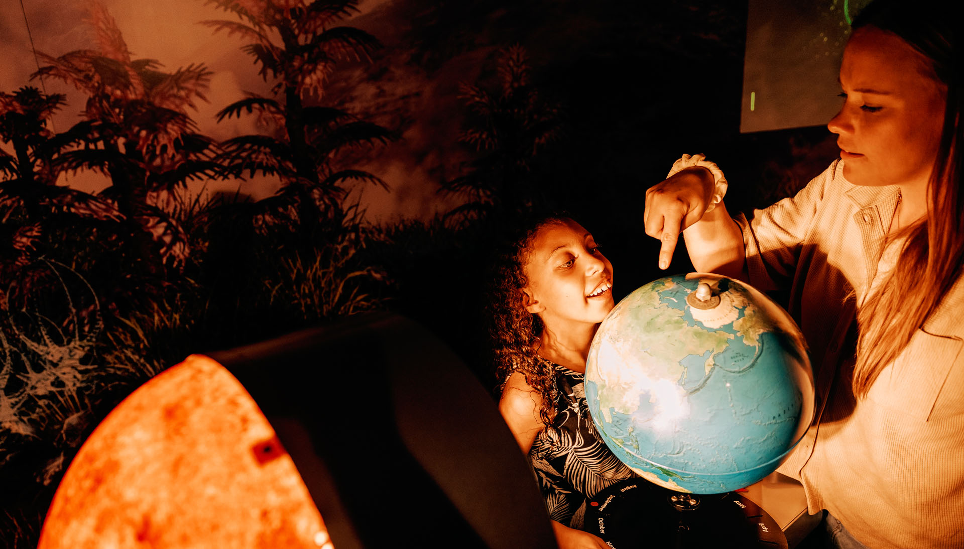 I vår astronomiavdelning kan du se hur stjärnhimlen ser ut på norra och södra halvklotet. Du kan lära dig hur stjärnbilderna ser ut och hur de förhåller sig till varandra. Förstå varför vi har olika årstider, månader, dag och natt i vår årstidssnurra.