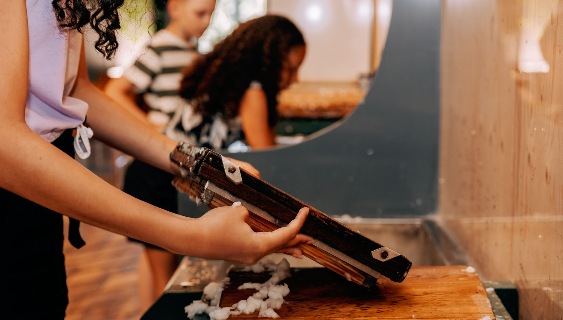 Från skog till papper. Följ trädets väg från skog till papper i vår avdelning Skog och hållbarhet. En väldigt uppskattad prova-på-station är vår papperstillverkning. Här får du prova på att göra ditt eget papper, som du kan ta med dig hem. Lär dig mer om de globala målen. Spela vårt Rensa havet från plast-spel, där du tävlar mot andra science centers i Sverige.
