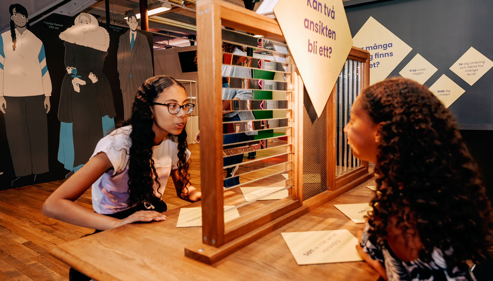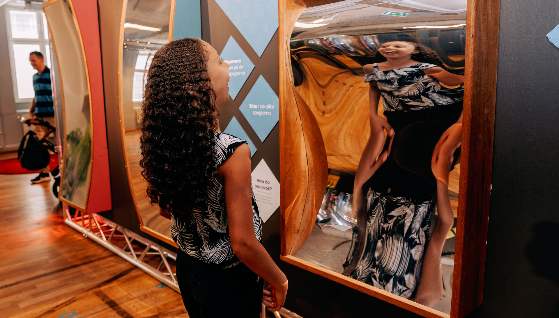 Ditt öga är en fantastiskt funktionell del av kroppen. Går det att lura? Med ljus, skuggor och färger kan du leka med ögats funktion och skapa spännande synvillor. Sätt dig mitt emot en kompis och testa ansiktsmixen, där era båda ansikten blir ett. Kan locka till många skratt. Roliga speglar finns det också. Vilken föredrar du?